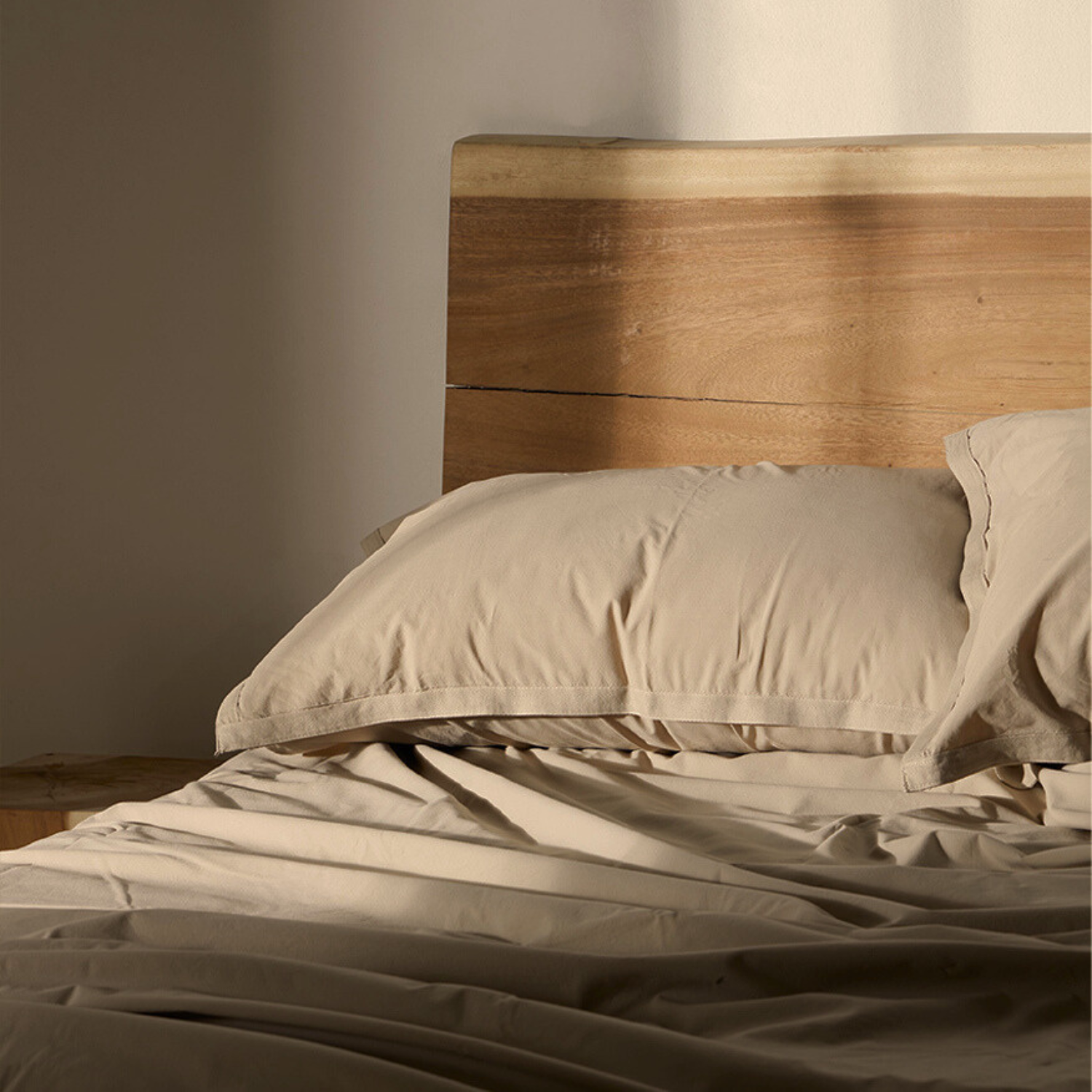 Solid Sungkai wood headboard and hand-woven rattan lattice