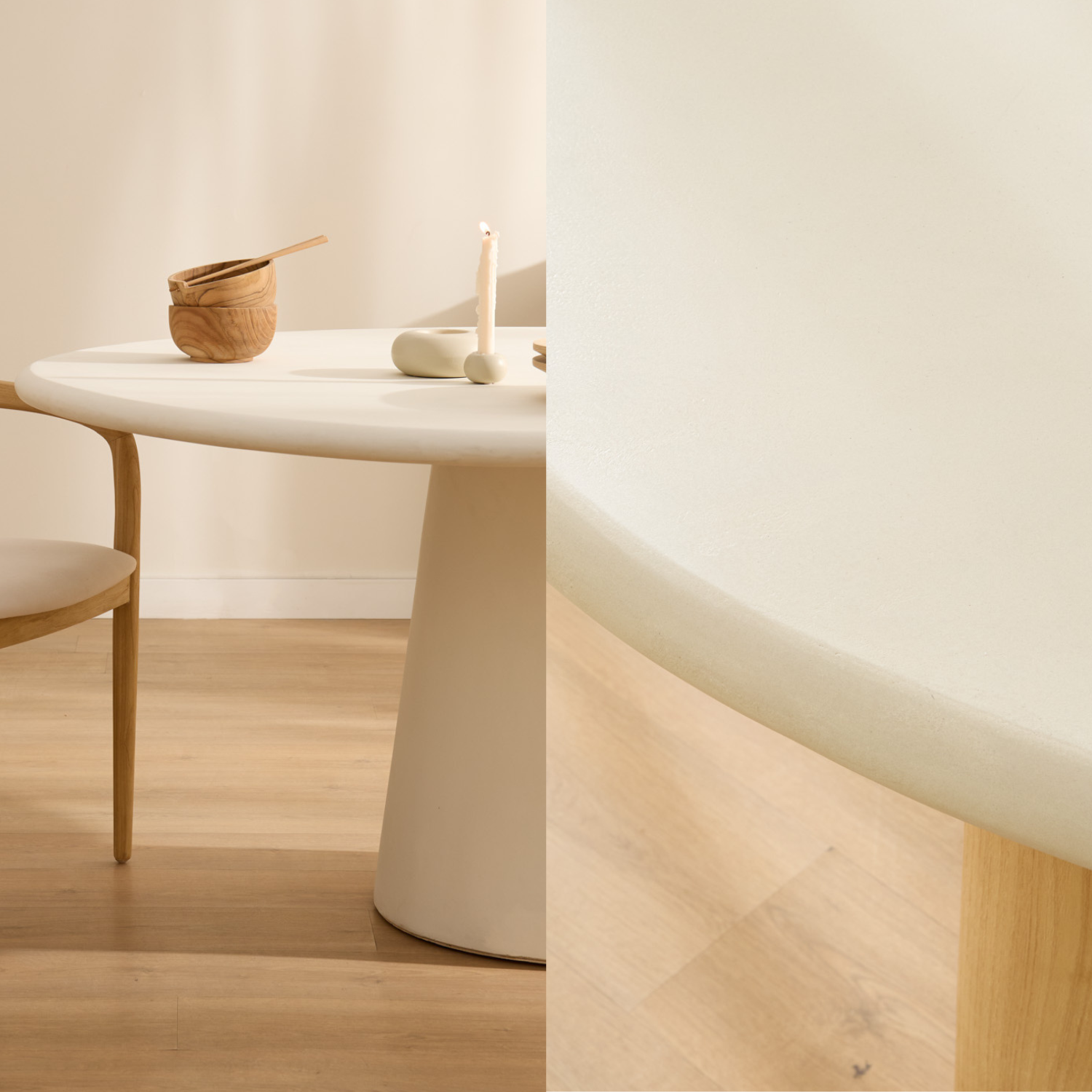 Microcement is an innovative and versatile material known for its strength, durability, and contemporary aesthetics. Microcement furniture consists of an MDF surface covered by a mixture of refined cement and warm white pigment. This composition allows for creating a smooth, continuous, non-rough, and joint-free surface, ideal for modern and minimalist designs.