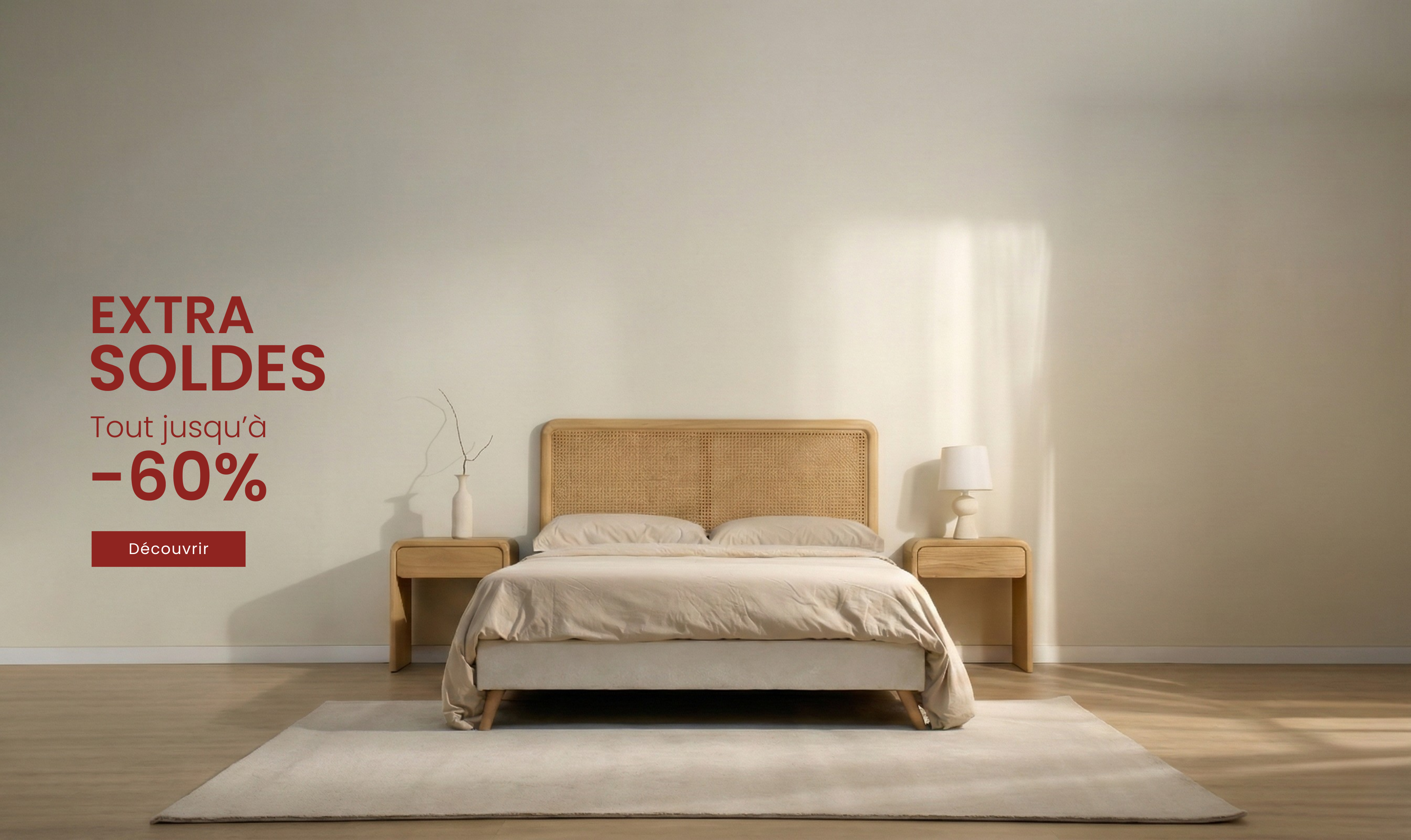 Tête de lit en bois massif Sungkai et treillis en rotin tissé à la main